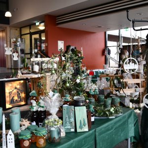 Zum 21. Mal veranstaltet in diesem Jahr die Kreative Ecke der Frauengemeinschaft einen Kreativmarkt. Zum Angebot gehören unter anderem dekorative adventliche Floristik, kulinarische Köstlichkeiten, künstlerische Arbeiten, kunstgewerbliches Handwerk, Lichterzauber und Naturmaterialien sowie eine Tombola. Dazu bietet die Frauengemeinschaft an beiden Tagen in der Cafeteria Kaffee und Kuchen an.