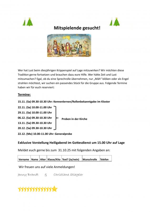 Krippenspiel Lage-Rieste -Mitspieler gesucht-