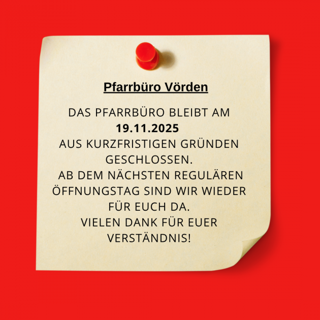Kurzfristig geschlossenes Pfarrbüro