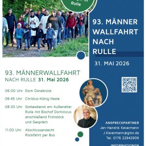 Die Fußwallfahrt startet um 6 Uhr am Osnabrücker Dom und um 6:45 Uhr in Christus-König Haste. Weitere Angebote ab Icker und per Fahrrad finden Sie auf www.ruller-wallfahrt.de