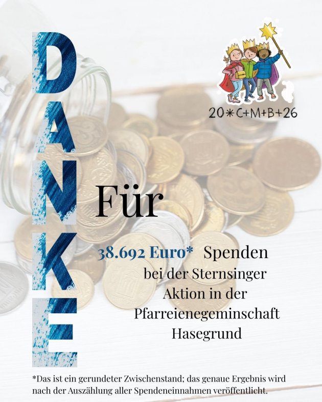 Ein herzliches Dankeschön an alle Spenderinnen und Spender aus unserer Pfarreiengemeinschaft Hasegrund.Durch Ihre Unterstützung konnte die Sternsingeraktion gelingen und Hoffnung dort ankommen, wo sie dringend gebraucht wird.